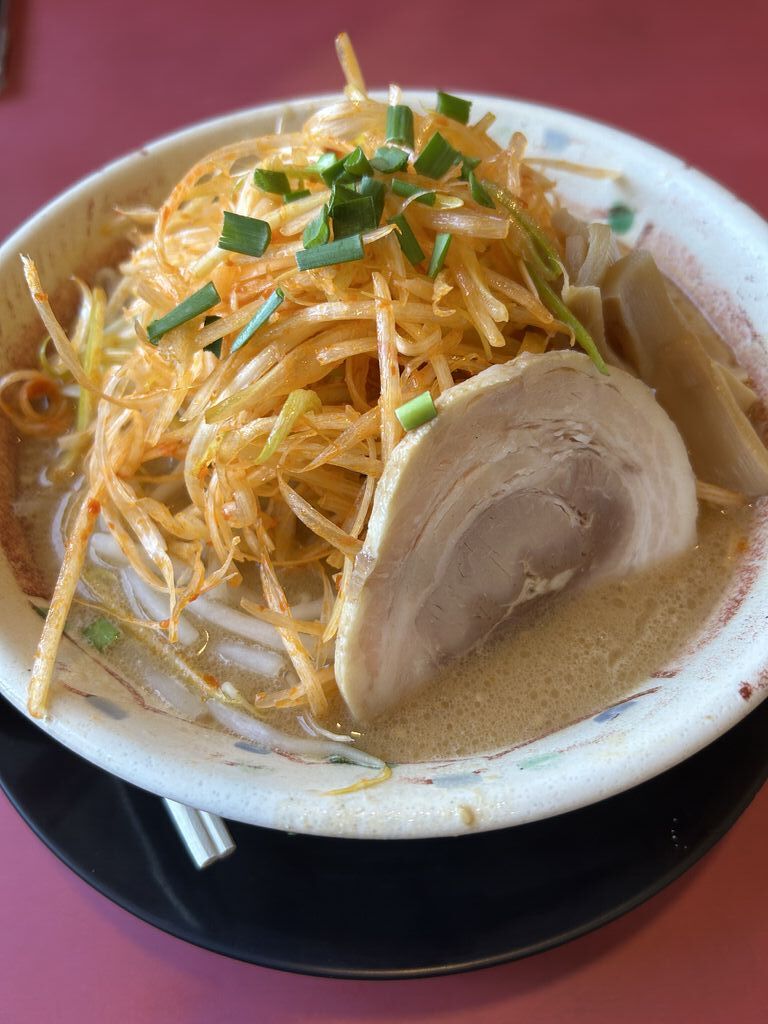 ある頻度で無性に食べたくなりますね。甘い味噌味の野菜ラーメン。今日はネギ、もやし満載のネギラーメン。甘めの味噌スープにネギの辛味がマッチ。それにしてもネギもやしがたっぷりでなかなか麺に辿り着きません。これも旨いです^_^ (訪問:2026/04/08)