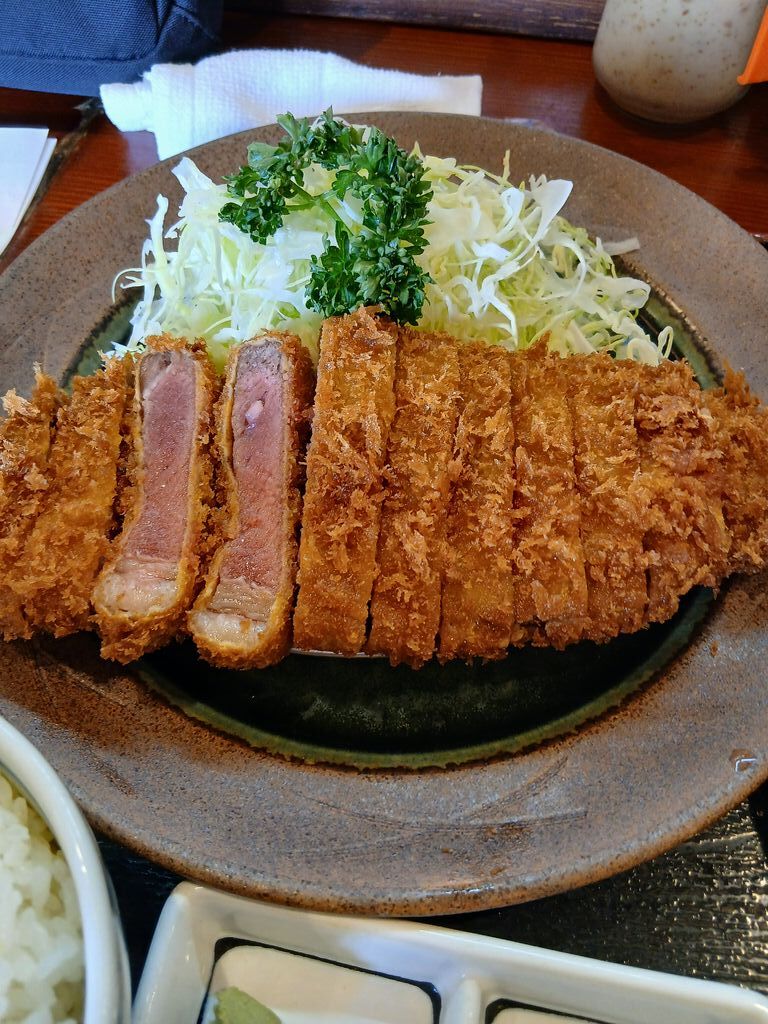 何か月ぶりに、食べに来ました。今回は、入り口の旗に炙り牛かつ御膳と書いてあったので、興味があり注文しました。牛かつは、ミディアムレアで、気になるようであれば鉄板で炙って、たれにつけて食べます。たれは、大根おろしの入ったたれ、わさび醬油、ソース、塩とつけて食べましたが、どれもとてもうまかったです。また近くに来たら、食べに来ようって思っています。ごちそうさまでした。 (訪問:2026/02/20)