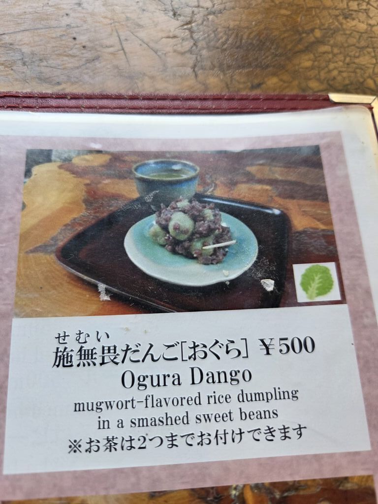 | 施無畏(せむい)だんご みたらし/おぐら※お茶付 |
