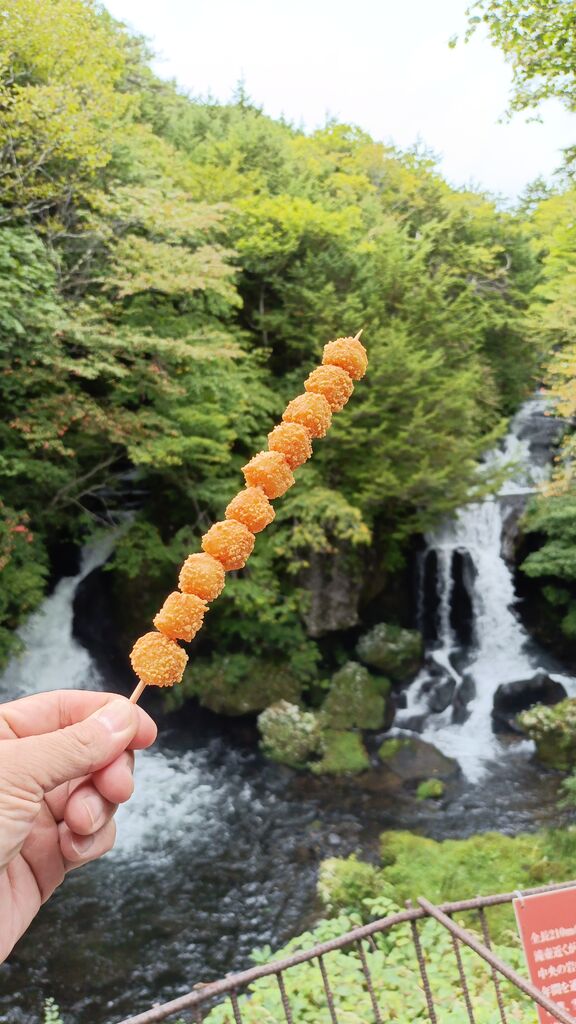 龍頭之茶屋でひと休み。おぐらだんご串、あんドーナツ、宇都宮餃子メンチ、チョコソフトをいただきました。サイズは小ぶりですが、どれも美味しかったです。竜頭の滝を見ながらモグモグ。観光気分に浸れました。 (訪問:2025/06/21)