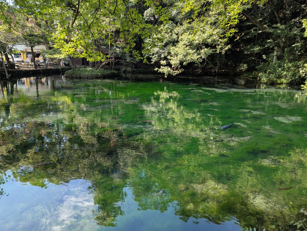 皆さんの口コミを拝見して、いつか行きたいと思っていたこちら。暑さもあったからか、涼を求めてたくさんの方がこちらにいらしてました。友人と、スッゴいきれいじゃない?とビックリしてしまうほどの透明度。手前の鯉はもちろんの事、奥の方を優雅に泳ぐ鯉の姿までしっかり見ることが出来ました。すぐそばには水の神様も祀られており、こんな綺麗な池のそばにいる神様はきっと幸せだろうなぁと感じてしまいました。季節が変わると見え方も変わってくるのかなぁ。ぜひまた癒しを求めてお邪魔したいです。 (訪問:2025/09/28)