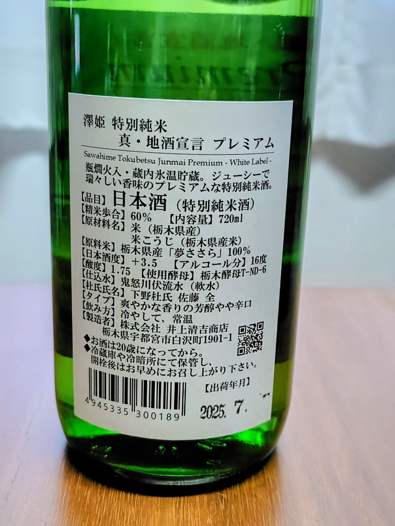 | 澤姫 山廃純米 真・地酒宣言 | 【720ml詰】1,595円 【1,800ml詰】3,190円 |