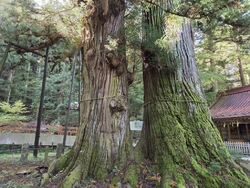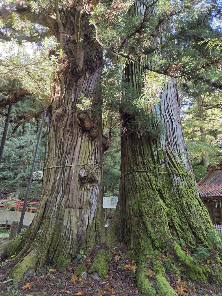 那須方面へ出掛ける用事があり、年始ということもあってお詣りできないかな?と思い、立ち寄らせていただきました。車から降り歩いていくと、風もなかったのですが、私達を出迎えるかのように杉にのっていた雪がサラサラと降ってきてキラキラと輝いていました。(たまたま、偶然、の出来事だと思いますが…)神社でご挨拶させていただき、透き通ったお水の中で泳ぐ鯉を見たり、夫婦杉を見たり…。初めて逆杉を目の前で見ましたが、圧巻でした…!!次は紅葉の季節にも行ってみたいです(^^) (訪問:2025/01/05)