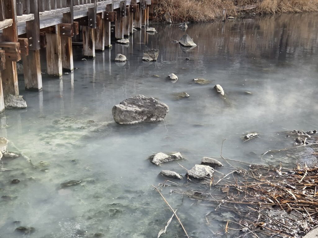 NEW真冬の真っ白い真綿の様な雪で覆われた、氷で、凍結した湯ノ湖です。いつも来る遊歩道からの湯ノ湖に流れる源泉は、凍っていました。やはり、紅葉時期の大混雑とはいかないですが、観光客が朝早くからぼちぼち訪れていました。水質はとても綺麗でした。湯ノ湖の雄大な大自然の景観に感動いたしました。 (訪問:2025/12/30)