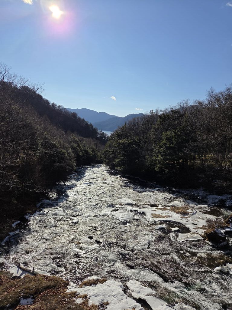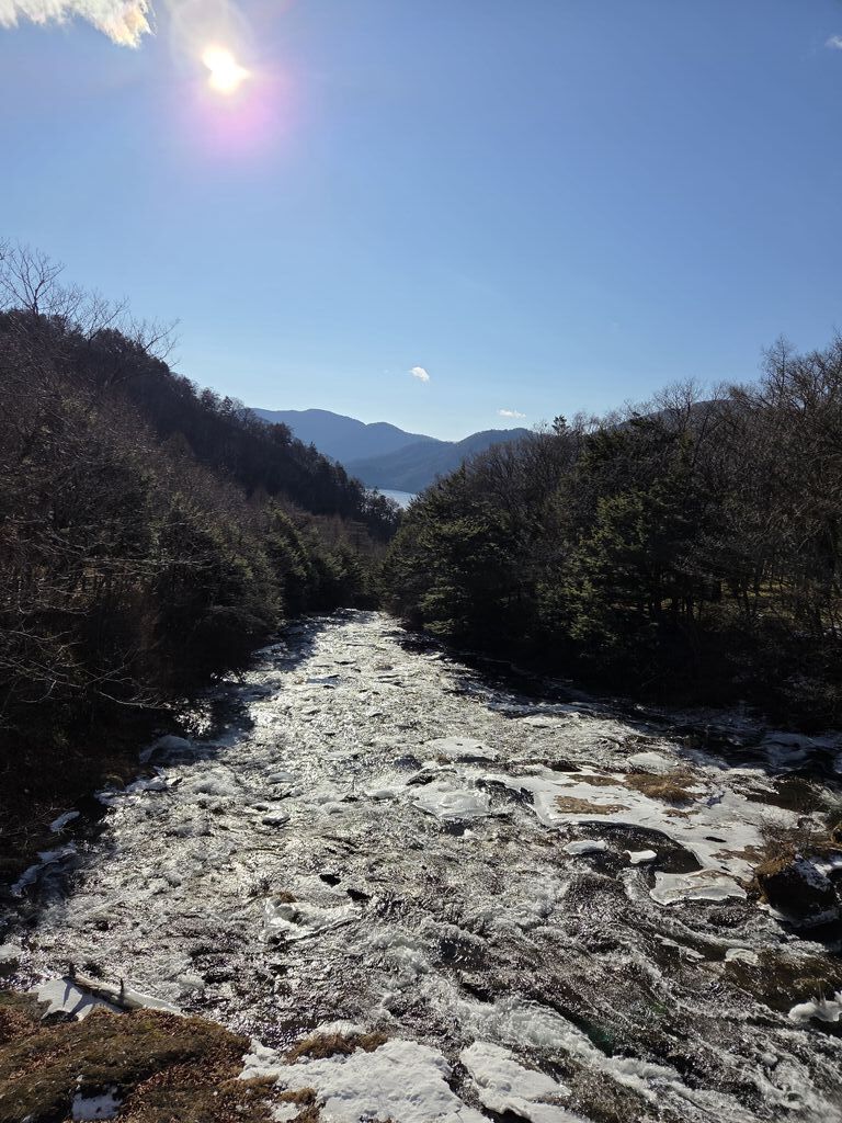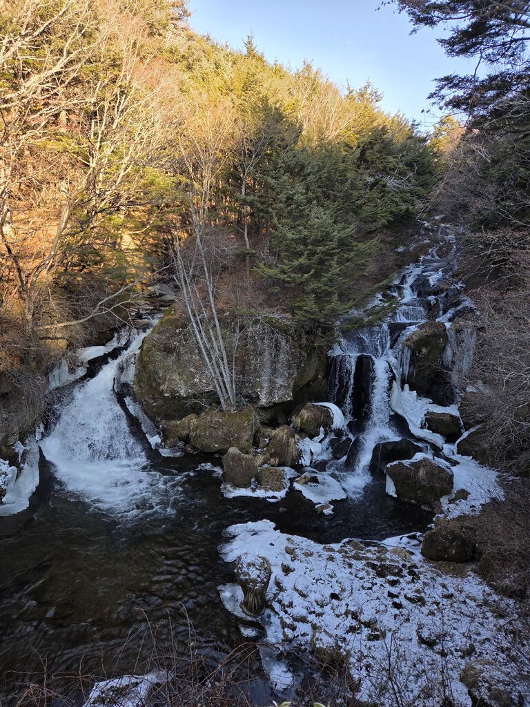 NEW真冬の竜頭の滝です。やはりこのスポットは、紅葉時期ではないにもかかわらず、観光客が早朝から来ていました。外国人の家族連れもいました。皆さん手に手にスマホで写真撮影を、していました。滝が多少、氷はじめていました。また、竜頭の滝の滝上からも見てその豪快さに圧倒されました。 (訪問:2025/12/30)