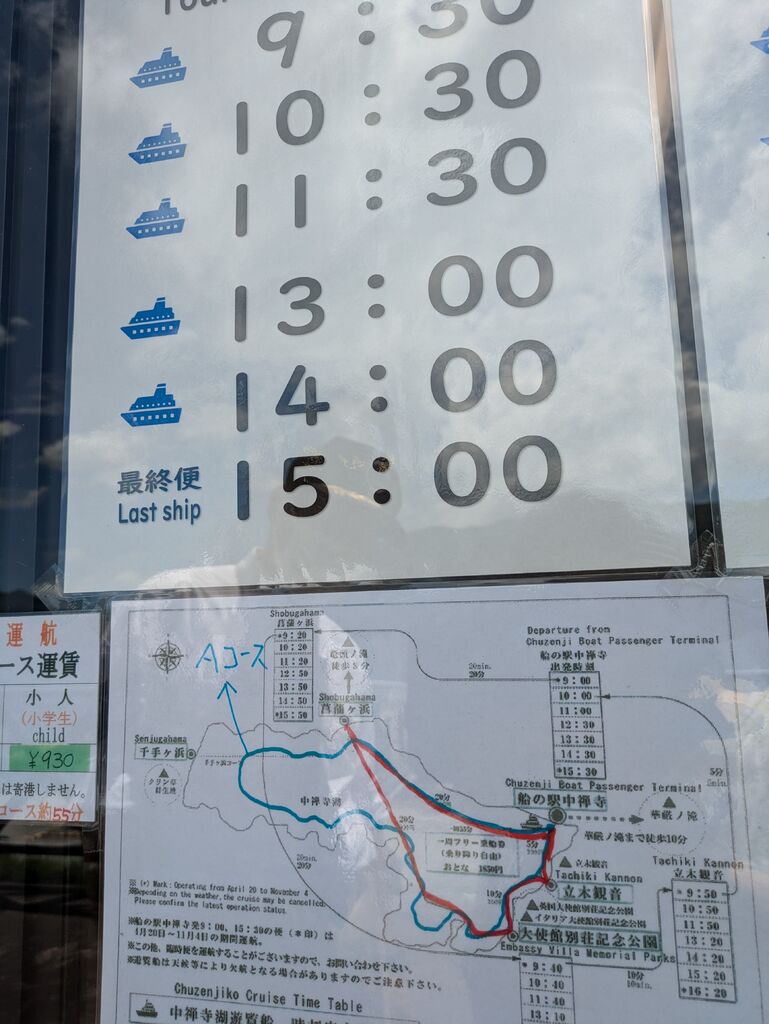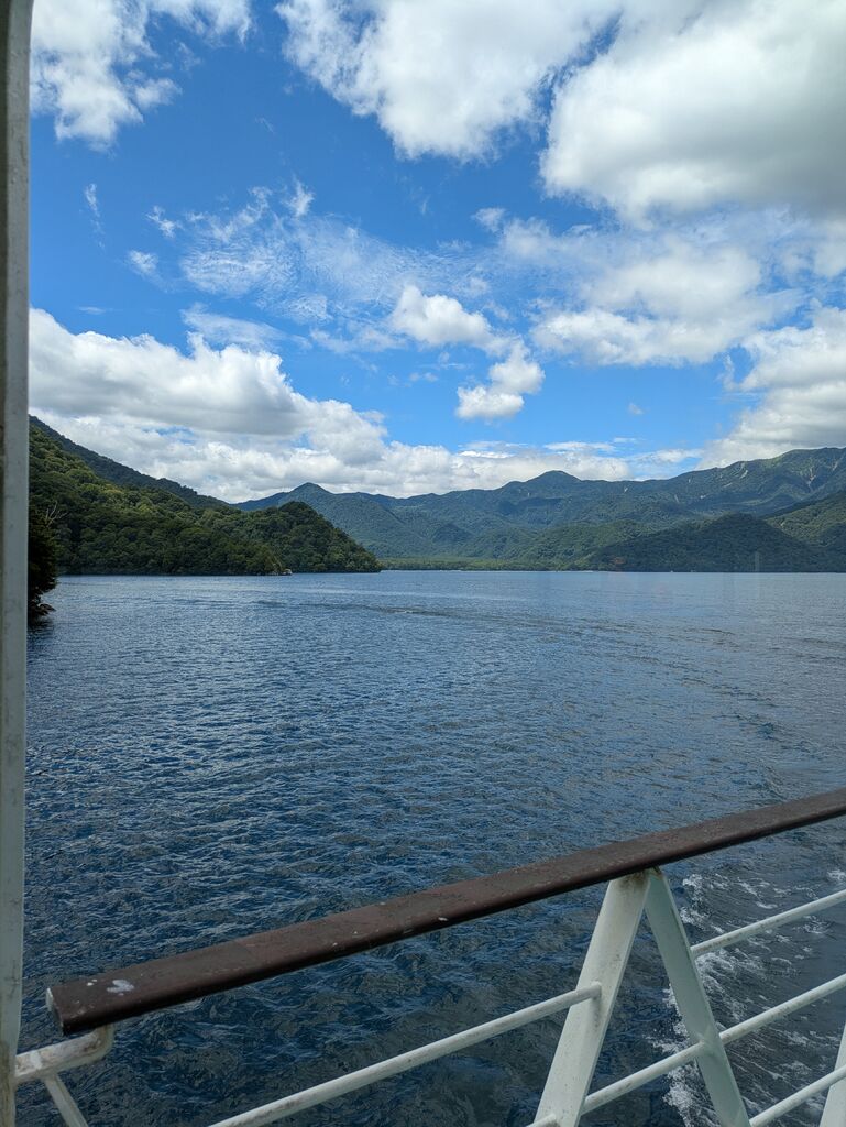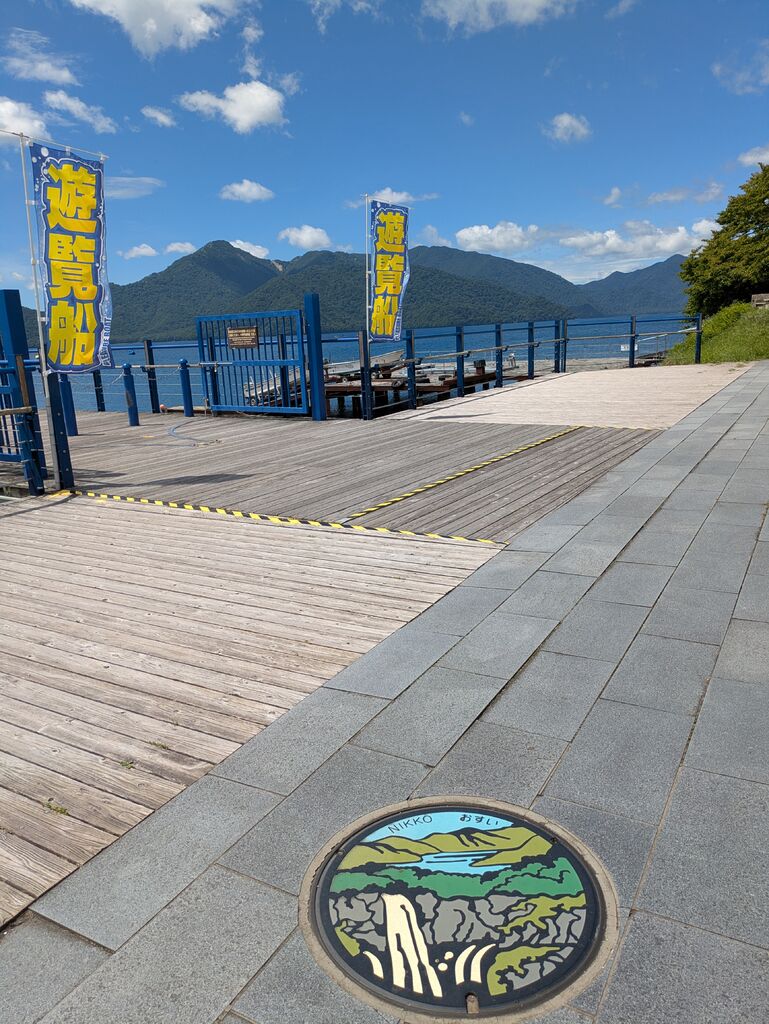 日光へ何回も来ても遊覧船は初めて(*^^*)。臨時便も出ていてのんびり乗船出来、一周を途中で止まらないコースで1時間弱でした。この時期も暑さを感じず爽やかでおすすめですが、秋の紅葉の時期も素敵でしょうね。乗り口に奥日光の図柄のマンホールがありました。 (訪問:2025/08/15)