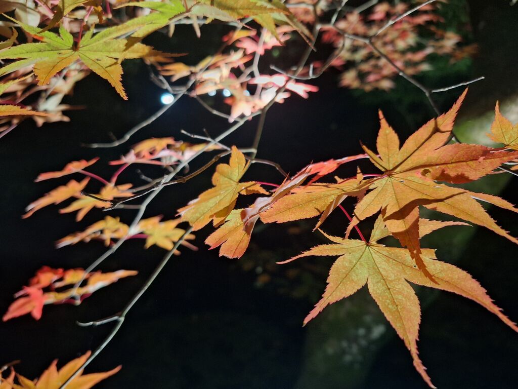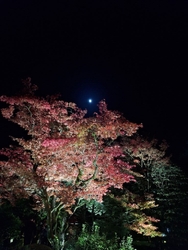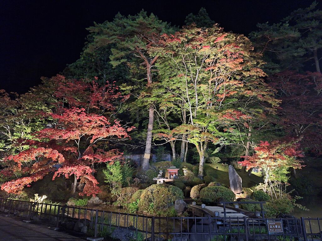今年も紅葉とライトアップを楽しみに18時頃お邪魔しました。混雑覚悟でしたが、輪王寺の真ん前に車を停めることができひと安心。到着時には三仏堂をバックに太鼓の演奏がされており、キッチンカーもたくさんあって賑やか。入場券を購入していざ目的の庭園へ。入ると紅い紅葉と緑の木々が色鮮やかに照らし出されとっても綺麗で幻想的☆水面に反射する建物や紅葉もまた趣あって良いです~!ちょっと水が濁っていたのが残念ではありますが、それもまた面白いかも。月が良い位置にあり、紅葉とライトアップと月の共演も拝むことができて本当に良かった‼三仏堂でもきっちり参拝もできたし、仕事調整して半休とれて良かった~♪帰りがけにキッチンカーで行列を作っていた『肉巻きおにぎり(ねぎ塩)600円』をゲット。熱々ジューシーな美味しさで締めさせてもらいました^^ (訪問:2025/11/01)