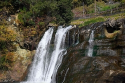 江川にかかる幅65m高さ20mの大滝で、大蛇が住むという伝説があり、名称の由来にもなっています。滝周辺は遊歩道で整備されています。またすぐ近くには、川口松太郎の小説「蛇姫様」のモデルとなった姫の墓もある太平寺もあります。
