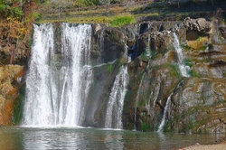 那珂川に注ぐ江川にかかる、高さ20m・幅65mに渡って流れ落ちる滝。