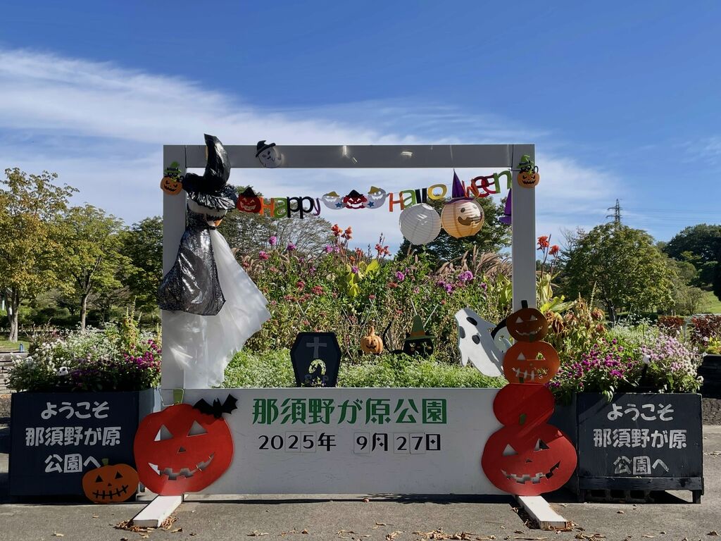 那須野が原公園でサイクリング。一周約4㎞のコースを5周。少し汗ばんできて良い運動になります。紅葉が始まってますね。これから暫く楽しめます。ハロウィンの飾りも楽しいですね^_^ (訪問:2025/09/27)