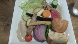 初めての訪問、開店5分くらい前に店の交差点を曲がると、何と店員さんが駐車場の案内、誘導をしてて、ビックリ、店前の駐車場は埋まり掛けていました。ランチメニューはメインにより2530円〜4070円とランチにしたらかなり高目です。これは私的な問題だが玉ねぎが天敵の私、メインはどれも玉ねぎが使われていたからソースに混ざるだけのローストビーフ丼にしました。オプションの追加は一切付けず3300円。味は良かったです。売りの野菜ビュッフェはかぼちゃのシーズンだからかかぼちゃ系が多いからかぼちゃ好きなら今はお勧めします。野菜ビュッフェだけでもお腹が一杯になります。ともかく人気店ですから予約をお勧めします。 (訪問:2025/09/12)