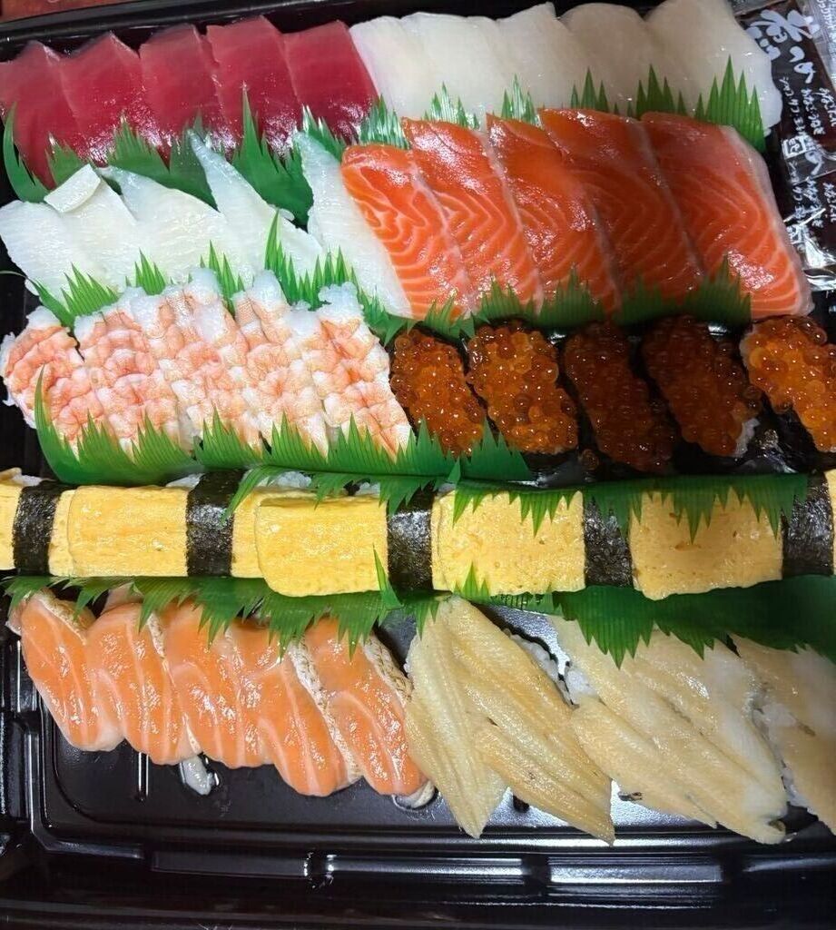 新年、我が家に親戚が集まり、総勢8人。事前に予約して魚べいさんで、『あかり』5人前 『サーモンまぐろづくし』5人前、計10人前をテイクアウトしました。海老、まぐろ、イカ、玉子、穴子などの定番メニューと、みんな大好きサーモン&まぐろがど~ん!! いっせいに食べ始めて、あっと言う間に完食しちゃいました(笑)お店で食べるのも良いですが、テレビを見ながら、お正月みんなで、ワイワイしながら食べるのも格別です(^^) ネタも新鮮、大きくてお腹いっぱい、大満足でした(*´ڡ`●) 大変美味しく頂きました❢ごちそうさまでした♡ (訪問:2026/01/04)