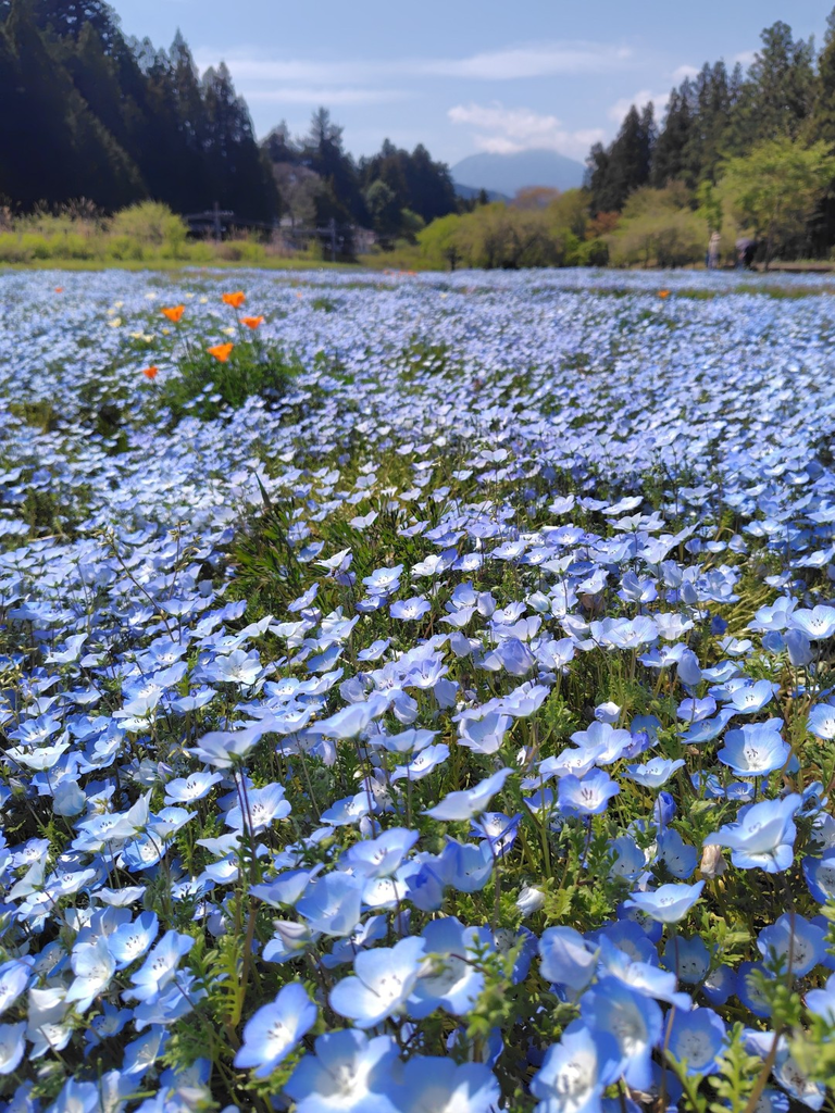 ひたち海浜公園に行かないと見られないと思い込んでいた、ネモフィラ ブルーの絨毯が、だいや川公園のチョウの丘で見られることを知り、早速 行ってきました!ネモフィラ畑の先には男体山が見える、絶景 ビューポイント♪遠目で見ても素敵だし、花びらが透き通る花を、一輪一輪ながめても愛らしい ( ꈍᴗꈍ)♪ 幸せなひとときを過ごせました。チョウの丘までの道も新緑や花が美しく気持ち良かったです。ぜひお散歩してきてください♪ (訪問:2026/04/26)