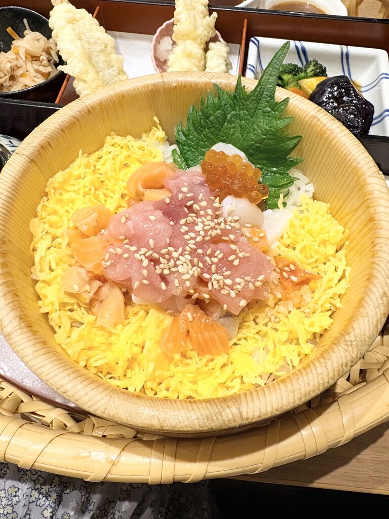 家族の打ち上げで夜利用しました。私は一目惚れした彩り花籠に決定!海鮮のおひつごはんに天ぷらや黒酢あんかけ、ちょこちょこ盛りで想像以上に大きな籠に入って登場でした♪おひつごはんは海老味噌ソースをかけたり、お出汁でお茶漬けにしたり、いろいろな味で楽しめました(^^)主人のお肉たっぷり牛鍋御膳、娘のそらとぶワオン!ランチも美味しかったとのこと♪お得なクーポンや福袋もあったのでぜひまた利用したいです。 (訪問:2025/12/20)