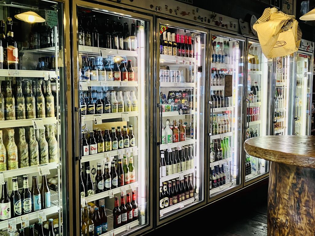 世界中のお酒がある。なぜかあるかき氷も人気の一品。