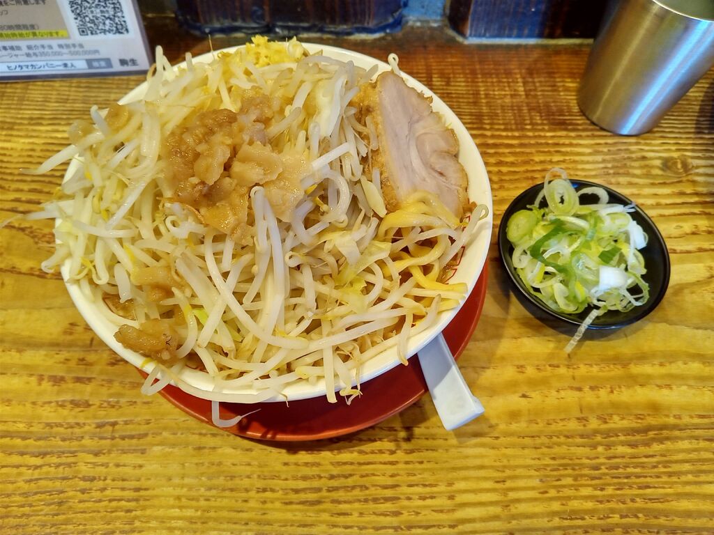 お昼を食べに寄りました。午後2時を過ぎていたので、待たないで入れました。入口の券売機でジパング麺と肉ほぐし丼を買って席につくとお店の人がチケットを持っていきました。水を飲んで待っていると、お待ちかねのラーメンとご飯が届きました。麺の上に富士山のようにのったもやしも食べすすめると、下から麺が出て来ました。こんなに食べられるかと心配でしたが、あっという間に完食出来ました。肉ほぐし丼もあっという間に食べ終わりました。とてもおいしかったです。また行くときが楽しみです。 (訪問:2025/11/03)