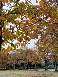夏の暑い時期は、散歩はしなかったのですが、しばらくぶりに散歩すると、涼しくなったこの時期は、とても気持ちいいもんです。ましてや、公園の木々が色づいてくると、近づいて見上げてみたり、ちょっと深呼吸もしたくなります。散歩には、とてもいい時期になりました。 (訪問:2025/11/05)