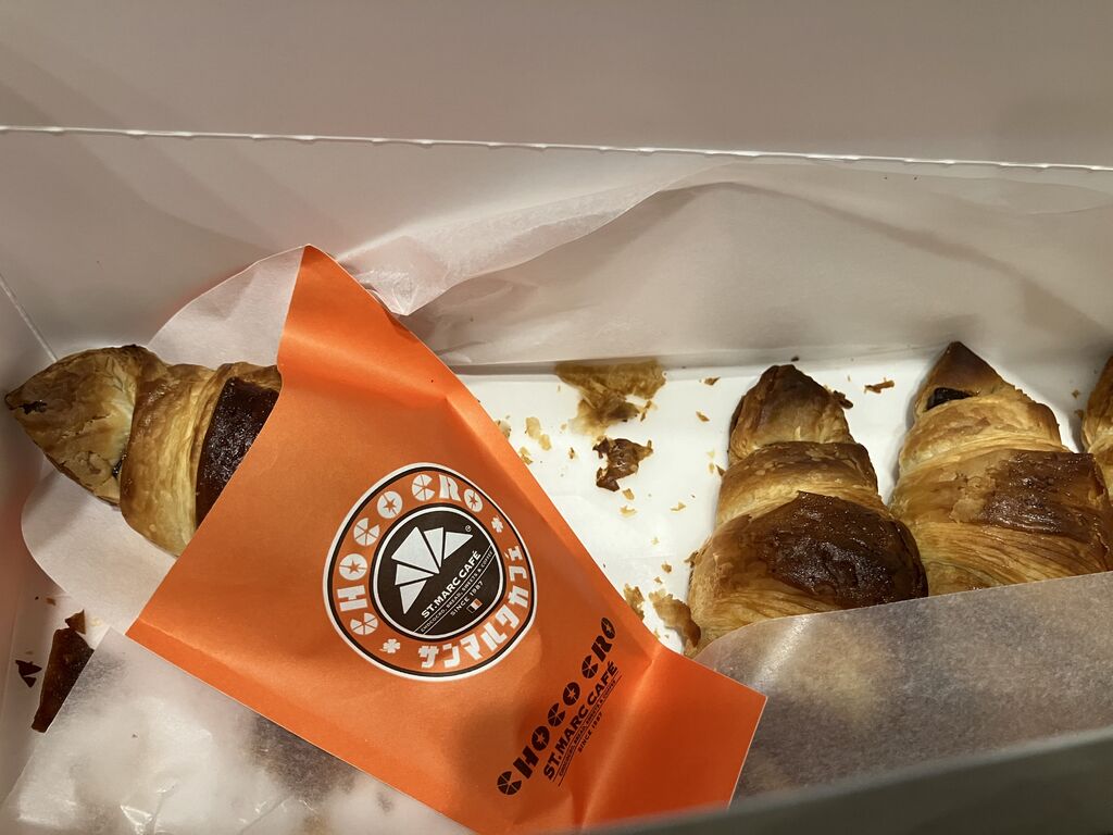 チョコクロをテイクアウトしました。さっくりとしたクロワッサンの生地に、チョコレートが入っていて美味しいです。サンマルクカフェのアプリを登録すると、ときどきお値引きクーポンが届いてお得にお買い物できます。 (訪問:2025/11/15)