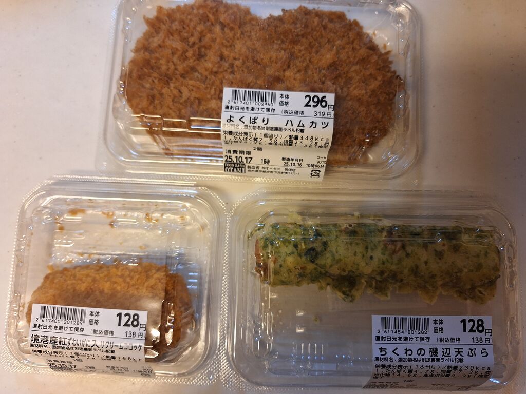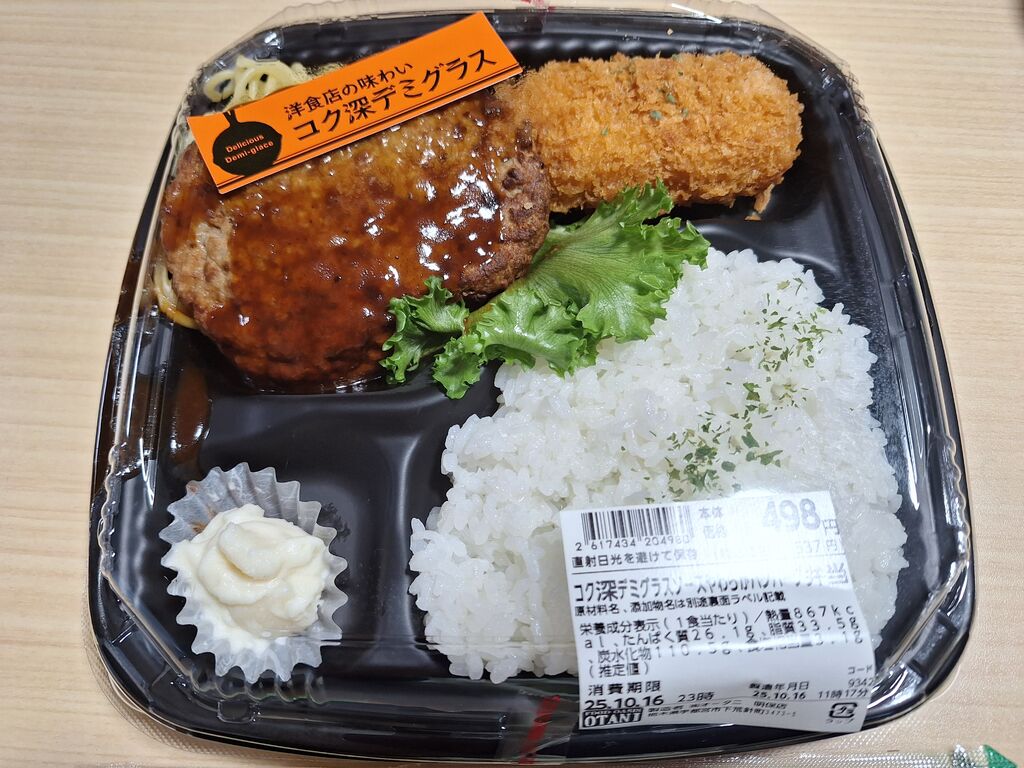 足銀ATM利用がてら自分のお昼を買いに寄りました☆豊富なお弁当コーナーから“コク深デミやわらかハンバーグ弁当”をチョイス♪498円+税とお買い得でボリューミーで、これだけでお腹いっぱいになりました。夕飯のおかずに“紅ずわいがに入りクリームコロッケ”や“よくばりハムカツ”をチョイス。1個入り、2個入りがあって、食べたい分だけ買えて便利です。レジで“弁当まつり”のお知らせのチラシを貰いました!2日間限定で数量限定だそうです。美味しそうです(^ー^) (訪問:2025/10/16)