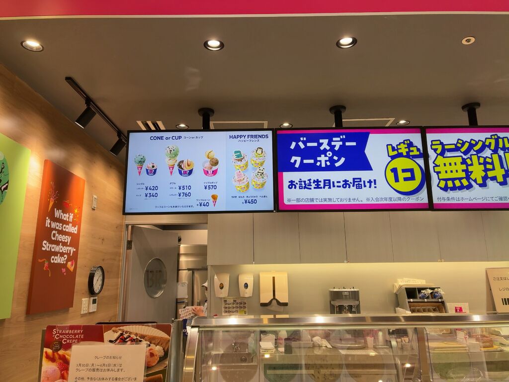 アイスをテイクアウトしました。サーティワンのアイスは種類が多く、期間限定のフレーバーも多いので選ぶのが楽しいです^ ^テイクアウトの際のドライアイスが保冷剤にかわったそうで、帰宅後早めに冷凍庫に入れるのをすすめられました。 (訪問:2026/03/28)