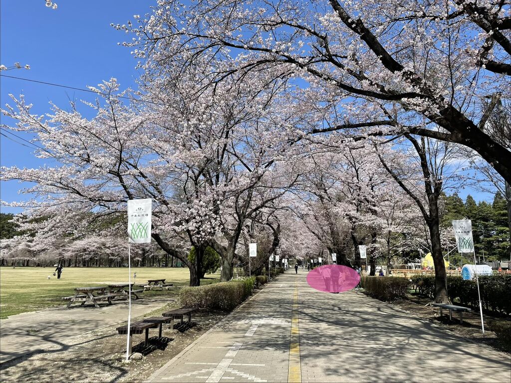 桜並木、満開でした。ここは広いので、道路から見えない奥の方にも桜がたくさん咲いています。レンタルチャリもあるので、ゆっくり散策して、新しくなった売店やレストランも利用してみて。ソフトクリームは相変わらず行列でした。 (訪問:2026/04/05)