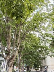 県庁前のシンボルロードのマロニエ並木、大きな葉が青々と茂り、蝉の声が一斉に聴こえて居ます(^^)蝉の抜け殻も沢山あり、居心地が良いんでしょうね♪トチノミもたくさん落ちていて夏の終わりを感じます☆ (訪問:2025/08/28)