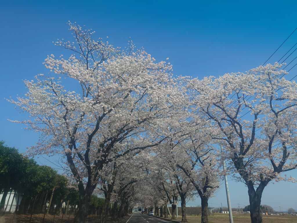 かしのもり公園の桜祭りに来た際に、桜の下を散歩してきました。満開は過ぎていましたが、桜の花びらが舞って綺麗でした。道路の両側に桜の木があるので、車に乗ったまま、ドライブしながらお花見するのにもオススメのスポットです。 (訪問:2025/04/12)