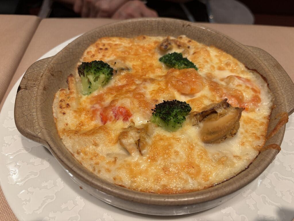 今日は遅いランチで訪問です。通しで空いている百貨店のお店は助かります。シーフードドリアとサラダスープのセットにしました。シーフードの風味が良く出ていて美味しかったです。 (訪問:2025/11/08)