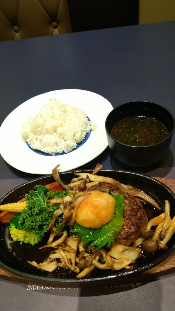 浮足立ち来店です。わくわくの初来店に、ドキドキしながら入店♡数日前に予め予約をしました。栃ナビポイントがあったので、折角だから行ってみたかった【INDIGO85】さんでランチしようと思い、ひとりのんびり楽しみました。メンバーさん推しのハンバーグに決定!‼『きのこおろしハンバーグ・¥1,450』をオーダー。サラダは2種類のドレッシングを提供してくれたり、ドリンクは種類豊富な中から選ばせてくれたり嬉しい限り。ハンバーグはおろしポン酢でさっぱりいただきました。げんこつ大のハンバーグは、ジューシー。きのこもたっぷり乗ってやって来ました。絶対また行きたい^_^美味しくて充足感でいっぱい。¥1,000引きは涙がちょちょ切れる程嬉しい。ありがとう御座いました。 (訪問:2025/12/30)