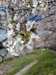 NEW前日に雨だったので、花も散り始めているかなぁと思いつつ、雨も上がったのでお花見に行ってきました。着いた時には曇り空でしたが、散策しているとだんだんと晴れてきて綺麗な青空に。やっぱり桜の花には青空が似合いますね♪風が吹くと花びらが舞っていましたが、満開の桜並木は圧巻でした。菜の花はあまり咲いていなかったのは残念でしたが、ソメイヨシノとしだれ桜の2種類の綺麗な桜で癒されました(*'▽') (訪問:2026/04/02)