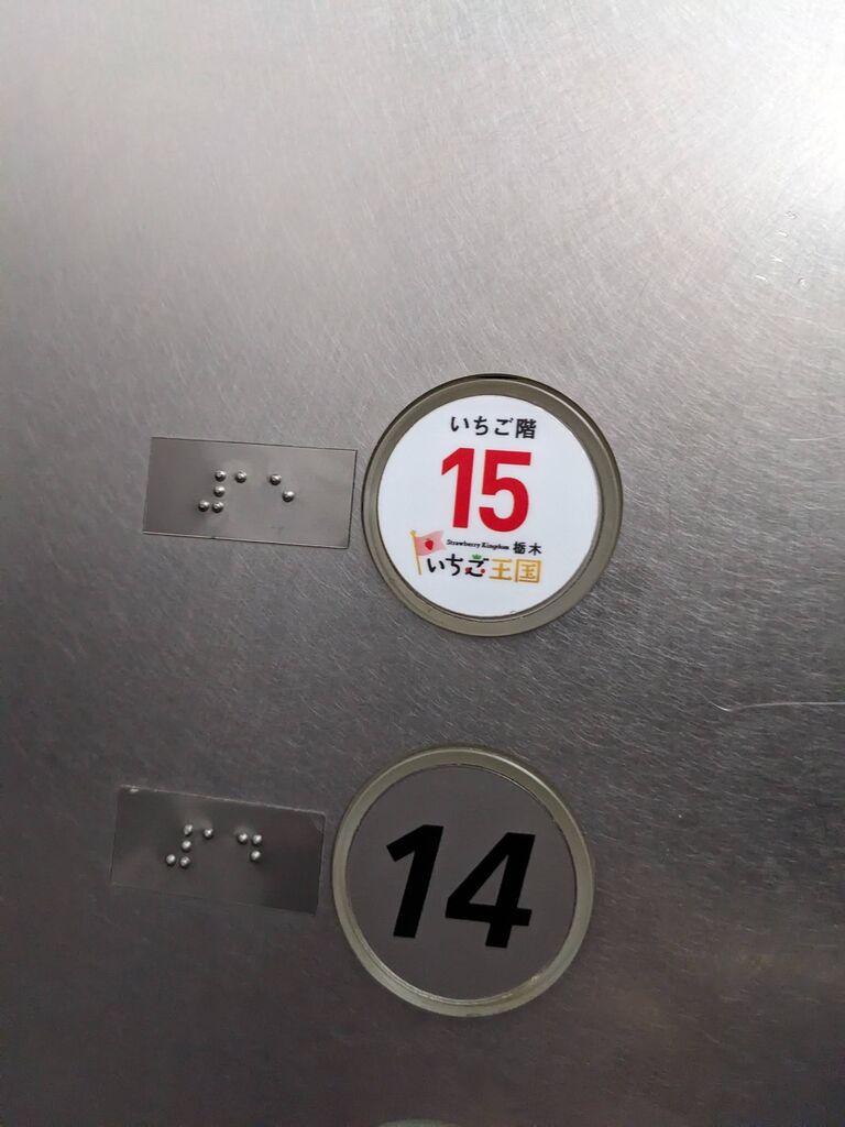 栃木県に住んでもうすぐ50年ですが、所用があり初めて訪れました。いちご推しがすごい(笑)階段、エレベーターの扉。エレベーターのボタン見ると15階=いちご階(笑)めっちゃインパクトあるし県外からのお客様にもアピールできて( ・∀・)イイ!! (訪問:2026/02/17)