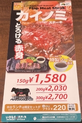 期間限定のイチボ300グラムを食べてきました。 お肉は柔らかくて美味しかったです。 ソースがたくさんありいろいろ楽しむ事ができてよかったです。 (訪問:2026/01/05)