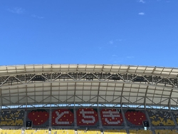 行ってみたかったカンセキスタジアムとちぎ、ようやくこの目で見て来ました♪あれ?平日だけど駐車場が混んでる…!ゲートも空いているみたいだし、立派な階段を上がりゲートAの前まで行ってみました。後で調べたら「宇都宮市小学校陸上競技大会」が行われていたようです。ユニフォーム姿のチーム?集合写真撮影の様子、その後方にはまだ真新しい黄色の座席を目撃し、こちらまでワクワクしてしまいました。良い日に野次馬見学が出来ました! (訪問:2024/10/29)