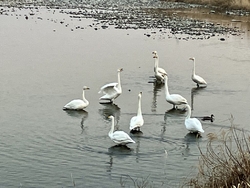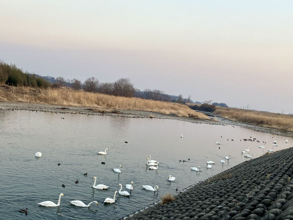 1月23日に訪れました。約50羽の白鳥を確認しました。当日は風が弱く穏やかな天気だったせいか、白鳥たちはのんびりと休んでいるように見えました。白鳥の優雅な姿にはいつも癒されます。 (訪問:2026/01/23)