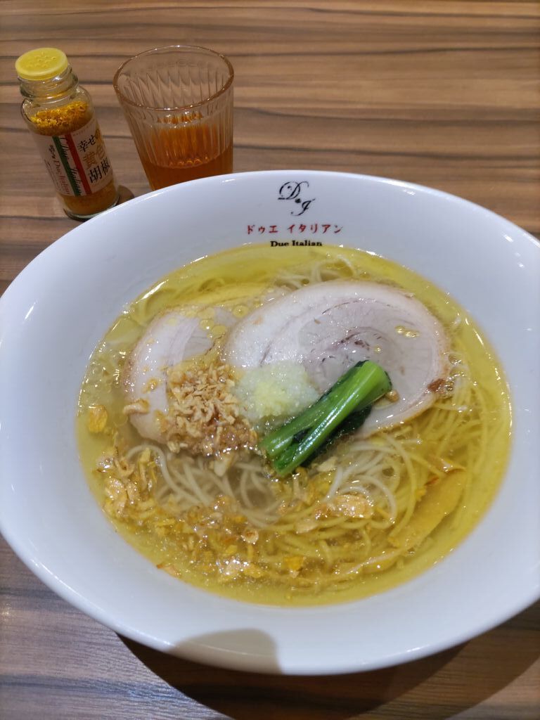 オシャレな店内は女性1人でも入りやすい雰囲気だなと思いました。飲み物はサーバーがあり、ルイボスティーやレモン水など自分で好きなものを選べるのも良いです。子どもは那須三元豚醬油らぁ麺、私は黄金の塩らぁ麺を注文しました。塩らぁ麺はスープがあっさりすっきりしていて、幸せの黄色い胡椒をかけると柑橘の香りで食欲をそそります。他にもお洒落なフロマージュのらぁ麺やレモンの乗ったものもあり、また食べに行きたいと思いました。 (訪問:2025/10/18)