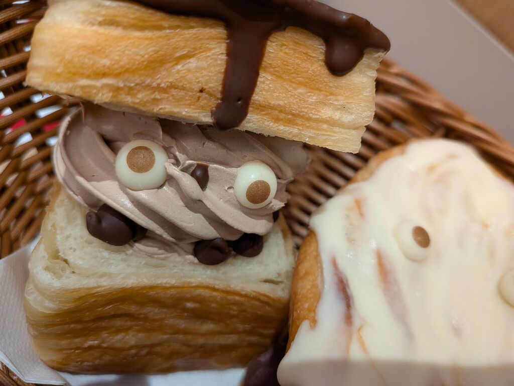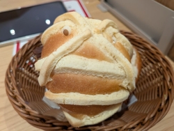 ランチをいただきました。ランチメニューは何とパン食べ放題!ガラス越しに見える美味しいパン達の誘惑され入ったお店。まさか食べ放題とは思いませんでした。ランチメニューをぽちっと送信すると、お店の方が可愛い籠を持って来てくれます。1回3個。食べ終わってからお替り。お持ち帰りは別料金ですが、ちょうど美味しいパンをお腹いっぱい食べたいと思っていたので、すごい嬉しい。メインメニューにクラムチャウダーを選択し、早速籠持ってパンをいただきに向かいました。どのパン見ても、まじ美味しそう。しかも限定パンもあるし。いただいたのはもちろん限定パン。期間限定のミイラメロン(¥421)おばけあんバターサンド(¥421)モンスターキューブパン(¥421)数量限定のレモン牛乳フレンチトースト(¥248)。見た目がかわいいだけでなく、まじ美味しいパン。まじ幸せ。クラムチャウダーもおいしかった。美味しいパンで超幸せになったので、あんパン好きな実家の父にあんパン(¥259)をテイクアウトしました。もちろん自分の分も購入。あんこがみっちり詰まっていてボリュームあるおしいあんパンでした。お値段だけ見ると、高いかなとも思ったのですが、食べたパンの値段計算してみたら、そんなことは全然ない。またお伺いしたいお店です。ベーカリーレストランC 佐野プレミアムアウトレット店) (訪問:2025/10/17)