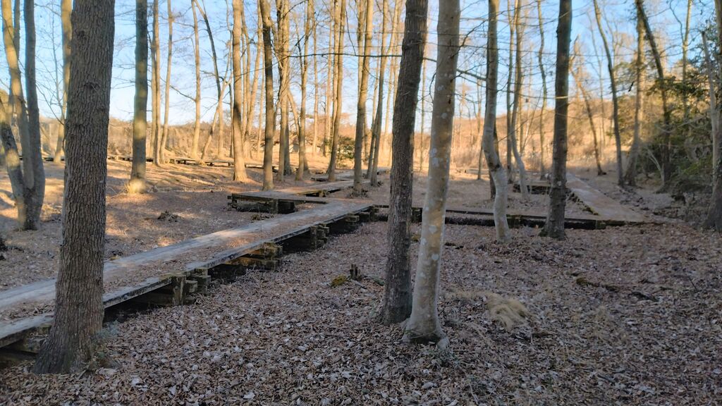 平日午前中訪問。出遅れたようで既に見頃を過ぎてました(╯︵╰,)だいぶ伐採が進み陽射しが届き、敷き詰められた落葉と湿地でまた来年可愛い姿を見せてくれそうです♪ (訪問:2024/03/07)