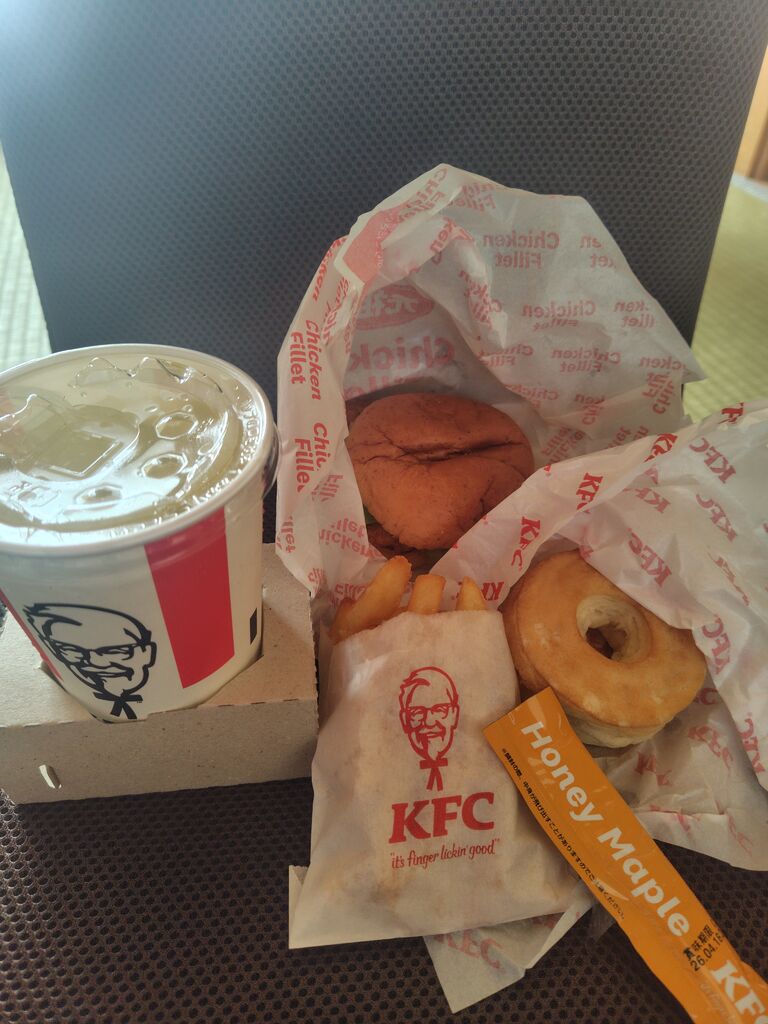 只今ケンタランチが!!期間限定で元祖チキンフィレバーガーセットと、和風かつバーガーセットどちらも、ポテトとドリンク付きで590円で、260円お得です(^^♪なので、行かなければ!!本日ミッション完了(笑)私はやっぱり元祖が好きなのですが、たまには和風も良いよなぁ♡ そして、ホットビスケットも外せない(*^^*) そして、何を隠そう?ケンタッキーのレモネードが、大大大好きなのです♡ レモンがスッキリ爽やか〜寒くてもコールドドリンクをチョイスしてしまう私なのです(笑)大満足なひとりランチでした♪ごちそうさまでした♡美味しく頂きました♬ (訪問:2025/11/05)