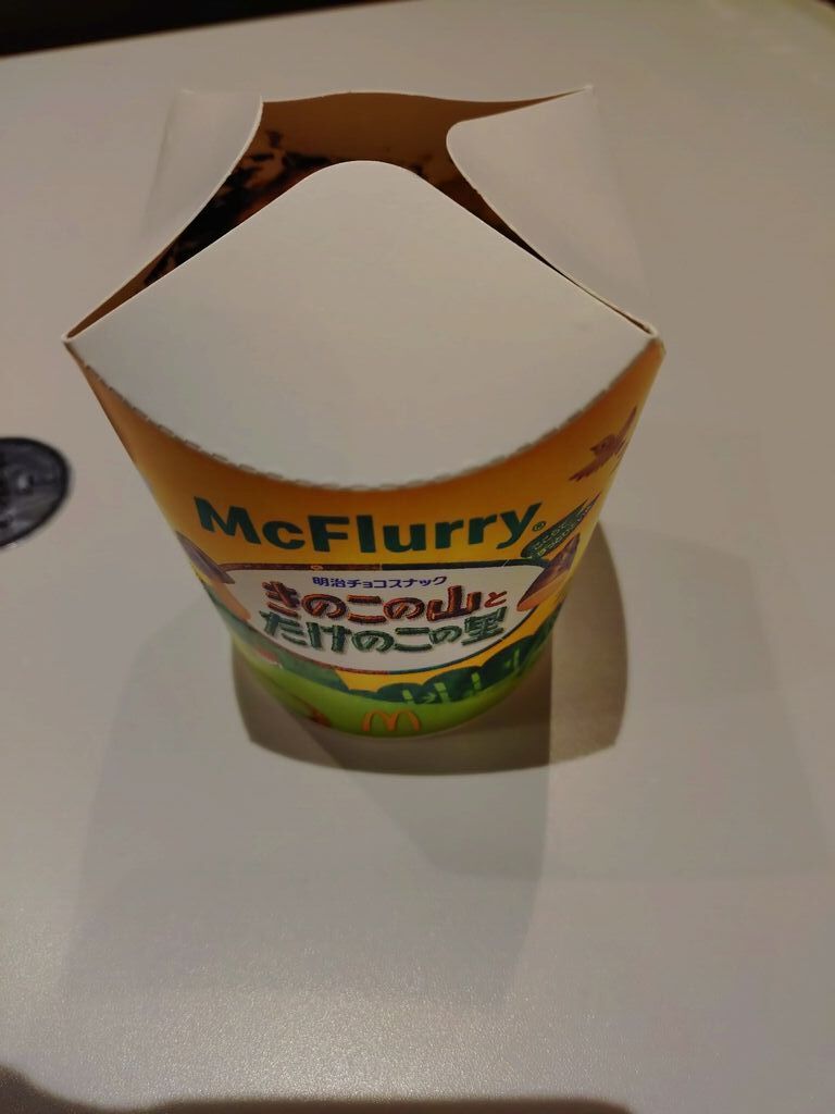 久しぶりに、マクドナルドのマックフルーリーを美味しくいただきました。今回は、いただいたマックフルーリーについて、お話をしたいと思います。美味しくいただいたマックフルーリーは、写真に掲載しました通り、マックフルーリーきのこの山とたけのこの里です。Meijiの有名で美味しいお菓子がマックフルーリーと組み合わさりました。きのこの山とたけのこの里の美味しさと甘さが十分に浸透していて、最初の一口から最後の一口まで、美味しくいただきました。マックフルーリーが好きな方は、是非、食べてみてください。今回も読んでいただき、誠にありがとうございました。 (訪問:2026/01/26)