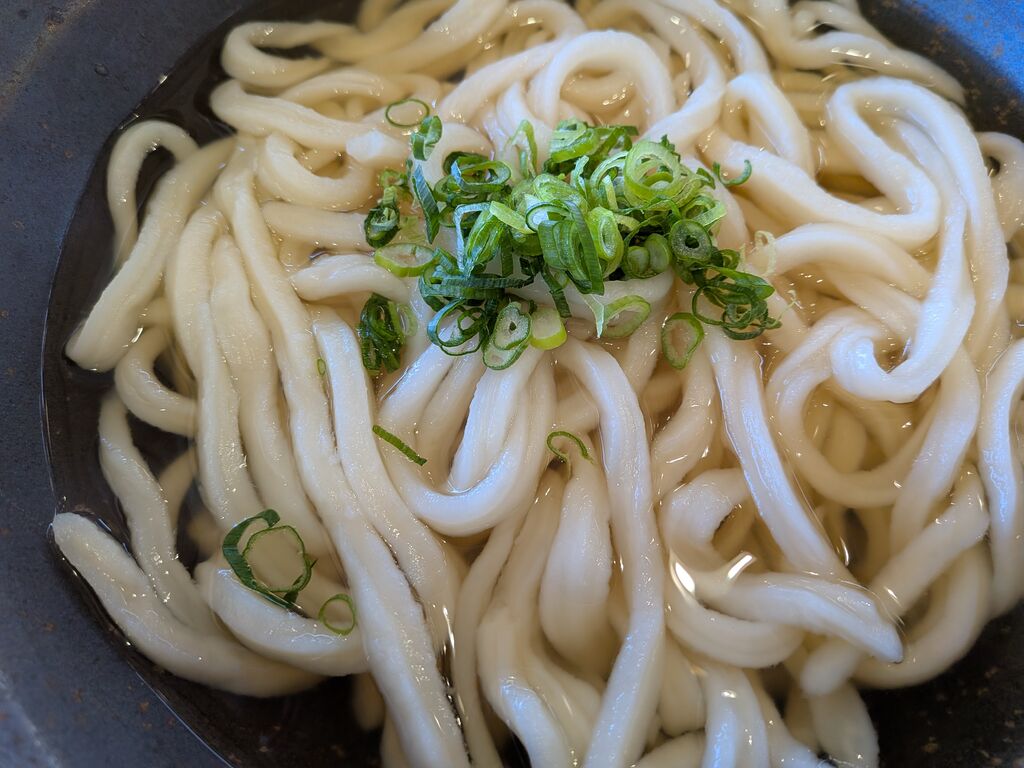かけうどん大盛りをいただきました。お値段690円。天ぷらうどん大好きなので、ずっと天ぷらどれにしようか考えていたのですが、レジ前の”大盛り無料”の看板に惹かれ、かけうどんの大盛りにいたしました。待ち時間も5分程。カウンターに乗っているうどんは、まじ良い香り。澄んだ出汁、見ているだけでも美味しそうです。やや細めの麺は、やや柔らかめで、すごいおいしい。細めで柔らかめなので、麺を食べるのが下手な私でも食べやすいです。天ぷらやお肉などトッピングはどれも美味しそうですが、この麺なら、トッピングなしでもおいしくいただけます。ねぎだけで充分なおいしさ。出汁もおいしくて、迷うことなく一気飲み。塩分は気にはなりますが、塩分以上に、鰹や昆布の旨味もあります。そして、鰹と昆布の栄養もちゃんと入っているので、心にも体にも美味しくいただきました。今回はちゃんと忘れずクーポンでオレンジジュースをいただきました。濃くて美味しいジュースでした。わずか690円で、強風と花粉に立ち向かう体力をいただきました。 (訪問:2026/01/30)