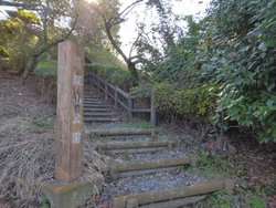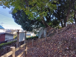 住宅地の中の小高い山の公園、牛若丸、弁慶が割ったと伝わる岩があります