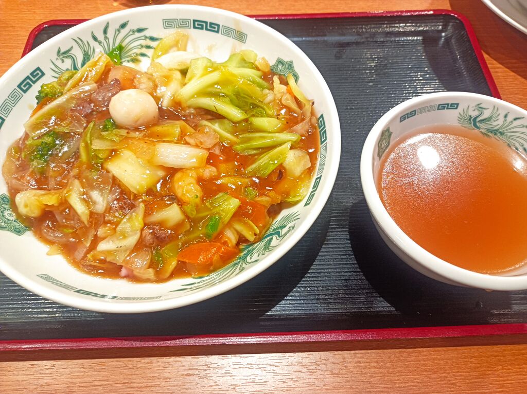 お昼に訪問しました。久々に中華丼を注文。たっぷりの野菜にとろみのある餡掛けがかけられ、ご飯も量がありお腹いっぱいになりました!豚骨ラーメンも美味しかったです。 (訪問:2025/12/08)