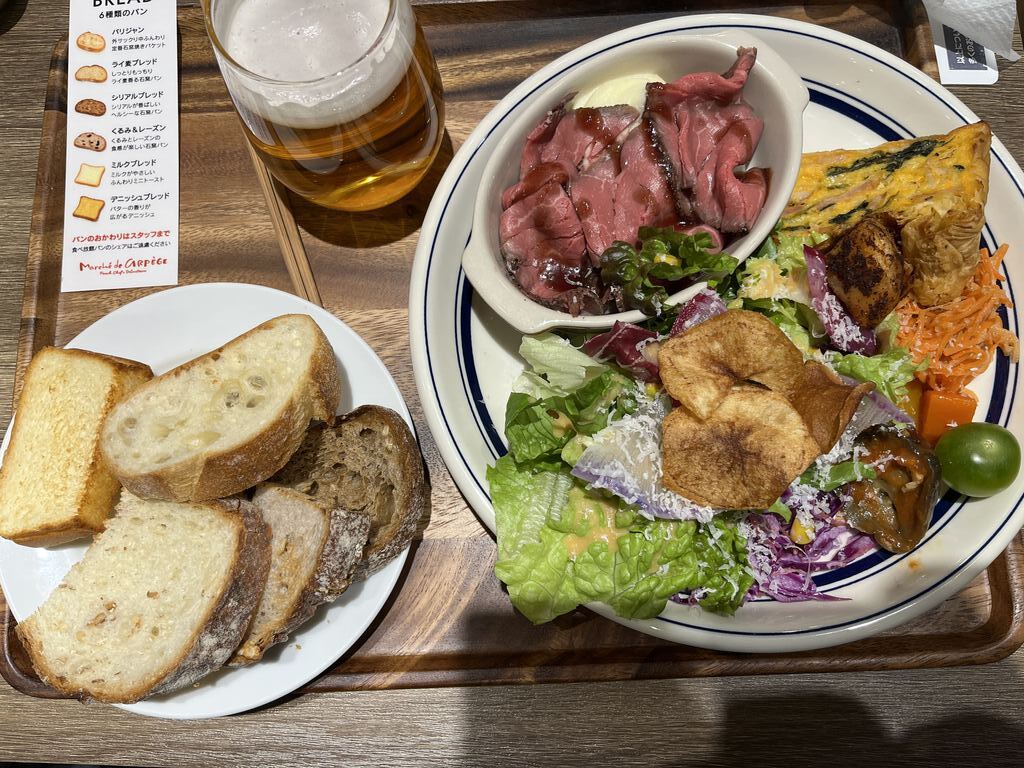 晩御飯にと前回頂けなかった『サラダデリプレート1210円』を目当てに18時頃お邪魔しました。デリ三種はその日の日替わり。なにがついてくるのか楽しみにしつつお席でスタンバイ。呼び出しブザーがなって取りに行くとどれも魅力的で、前回頂いた美味しいデリも入っておりテンションアップ。パンはもともと6種類盛られていて、全部でも好きなものでもおかわり自由。キッシュも美味しく、サラダのドレッシングも絶品☆お野菜中心なのでヘルシーだし、たっぷりお野菜が頂けて大満足‼紫キャベツのデリ、すごーく好みです^^パンもどれも美味しく魅力的で、ライ麦とデニュシュのがとにかく気に入ってしまい、おかわりして楽しんでしまいました。パセオのクーポンでドリンクサービスも頂けてとっても大満足♪是非またお邪魔して他のデリを持ち帰ったり、イートインしたりと楽しみたいです。 (訪問:2026/02/09)