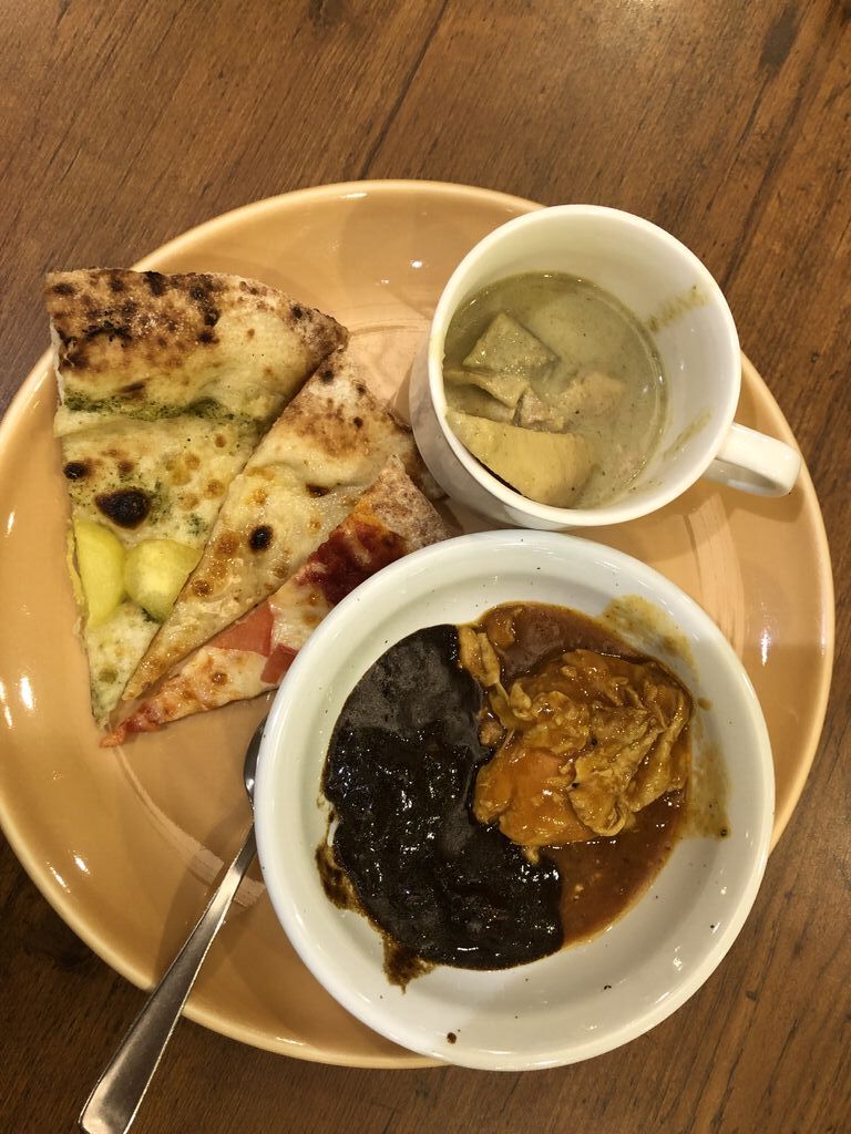 何年かぶりに家族で夕食を頂きました!偶然にも大好きなカレーフェア☆どれも本格的で、具が大きくボリュームあって、とっても美味しい〜☆ビスク、バターチキン、グリーン、欧風全て制覇!バターチキンは私には甘すぎることが多いですが、こちらのバターチキンは苦手な甘味がなく、コクとスパイス感あり気に入りました☆デザートコーナーには、ワッフル近くにドーナツもあって楽しめました☆今回感激したのは、汽車が走っていたこと!子供達が小さかった頃、喜んではしゃいでたなぁと懐かしくなりました。そしてキッズスペースが設けられていて、おチビちゃん達が喜んでいました!時間制限ないし、お子様連れでも安心して満足できそうですね☆また来ます! (訪問:2025/09/17)