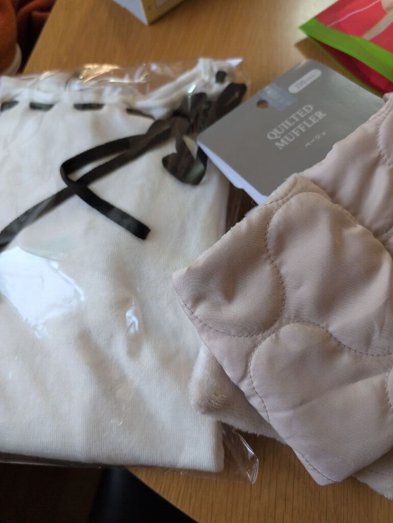 NEW年始のセールに子供とやってきました。別行動でそれぞれ欲しいものを探します。私は白のデザインニットと半額に値下げしていたキルトマフラーを購入。330円の半額なので165円‼️ガンガン使おうと思います。 (訪問:2026/01/05)