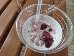 美味しい季節の『ヨーグルトドリンク(ぶとう)690円』を目当てに18時過ぎにお邪魔しました。たまに売り切れちゃうので心配でしたが、無事ゲット!両親へのお土産に『ヨーグルト(いちじく/ぶどう)各540円』もゲット。ぶどうの美味しい旨味たっぷりのヨーグルトドリンク、さっぱりとコクが同居した美味しさで、知人から来たお返事をしている間に飲みきってしまうほど。トッピングにはぶどう以外に梨も入っているようで、様々な食感と旨味が共存したドリンク☆今回も美味しく頂きました!次の季節のドリンクは何になるのか楽しみです^^ (訪問:2025/09/21)