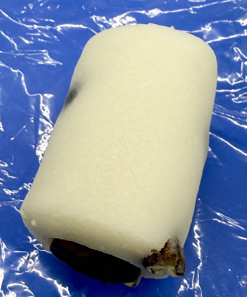 和菓子処「すずらん本舗」さんの「あさつき塩まめ大福」をいただきました♪賞味期限が当日とのことでいただけてラッキーです☆厚めのしっとりもっちりな皮に甘さ控えめな餡子、塩味の効いている豆、俵型なのもポイントです♡近くならではのご褒美大福です(*^_^*) (訪問:2026/02/08)