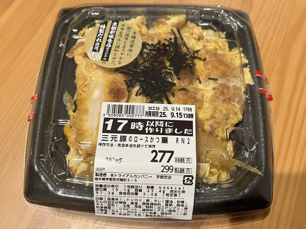トライアルさんで大人気のロースカツ重を購入しました。しっとり柔らかいカツが4切れも入っていて嬉しい。シャキシャキの玉ねぎと卵もたっぷり。お味も濃すぎず薄すぎずちょうど良い味付け。299円でこの美味しさ、ボリュームは本当にすごい。また購入したいです。 (訪問:2025/09/14)