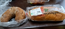 家族のリクエストで昼食用のサンドイッチを購入して帰ることに。購入したのは「ハムと野菜のサンド 335円」「チョコバナナ 410円」いつもサンドイッチとショコラなので今日はチョコバナナにしました。コーンフレークの入ったショコラが1番好きですがフルーツのデニッシュも果実たっぷりで美味しいです。 (訪問:2025/05/11)