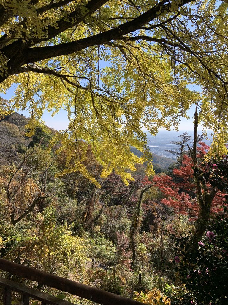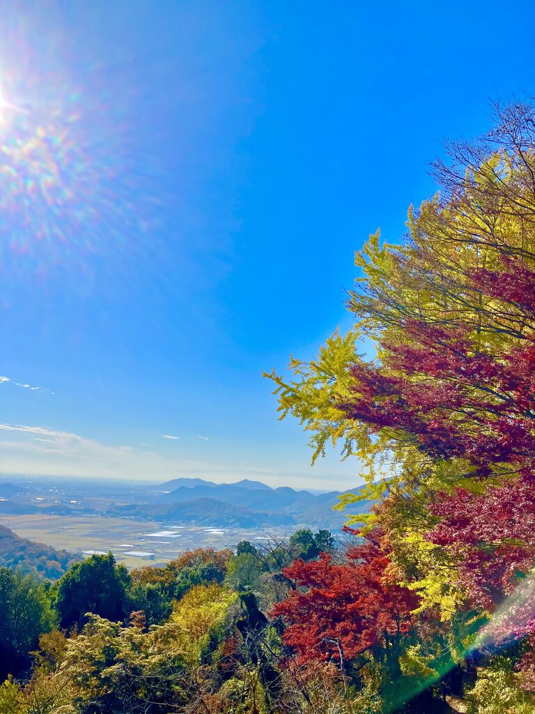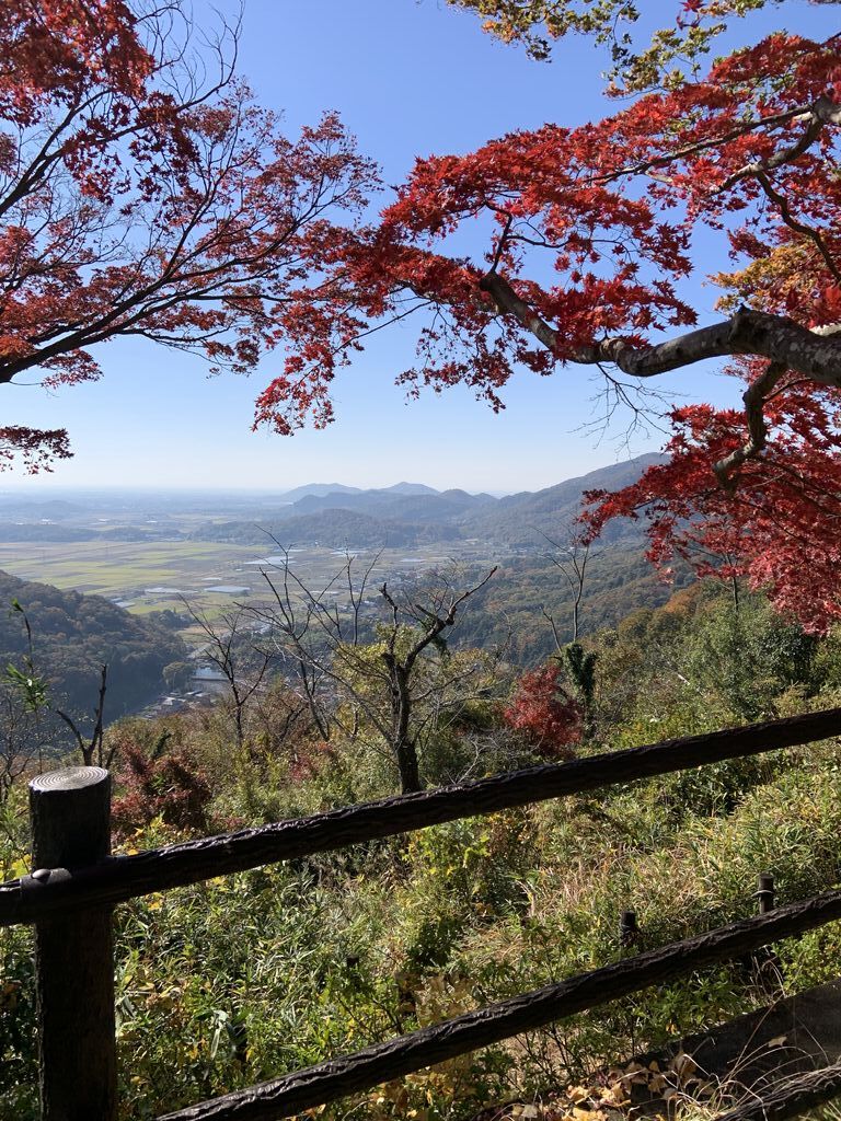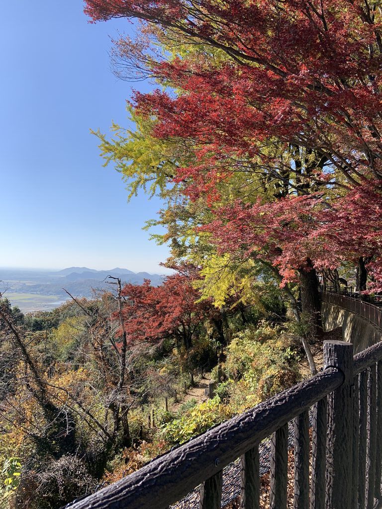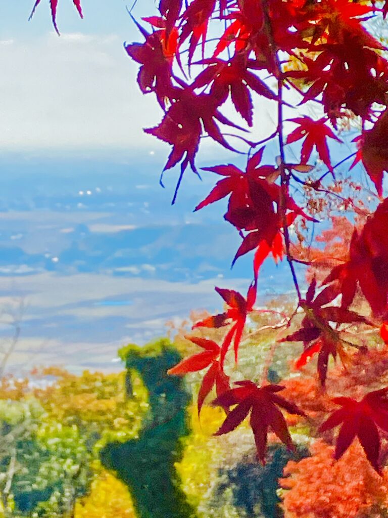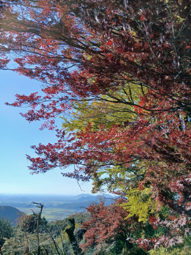 今日は、11月17日(月)の平日です。11時過ぎに見に来ましたが、謙信平の駐車場は、けっこう埋まっていました。葉っぱの色が、赤色、黄色、緑色と色づき、とてもきれいでした。この時期にしては、とても暖かく車の温度計は、22℃あり、遠くの景色が霞んでいました。もう少し冷えてくると、富士山も見えます。でも、いい景色が見られました。 (訪問:2025/11/17)